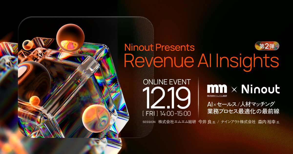 「AIを導入した」ではなく、「どう現場で使われているか」「組織・運用・仕組みがどう変わったか」「人がどう動いたか」という“浸透・実践フェーズ”に焦点を当てたシリーズイベント「Ninout Presents Revenue AI Insights」。共に学び、次の一歩を描く場をご提供します。