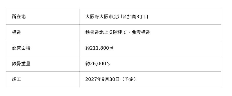 日鉄エンジニアリング株式会社(代表取締役社長:石倭行人、本社:東京都品川区、以下「当社」)は、このたび、SGリアルティ株式会社(代表取締役社長:栗和田武、本社:京都府京都市)および三井不動産株式会社(代表取締役社長:植田俊、本社:東京都中央区)より受注した大型物流施設「SGリアルティ・MFLP大阪加島」(所在地:大阪府大阪市淀川区、以下「本施設」)を着工しましたのでお知らせいたします。