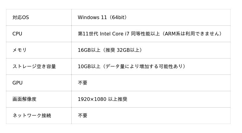楽々しらべぇ君をインストールするPCは以下のような要件を満たしている必要があります。