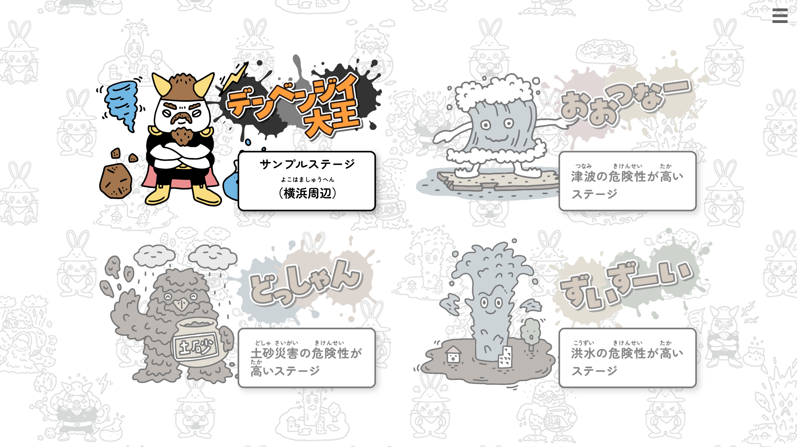 特徴:地図から災害リスクを予想するゲームです。プレイヤーは身の回りの地図・地形から「どんな災害リスクが潜んでいるか」を読み解きます。※体験版は横浜エリアのみプレイ可能