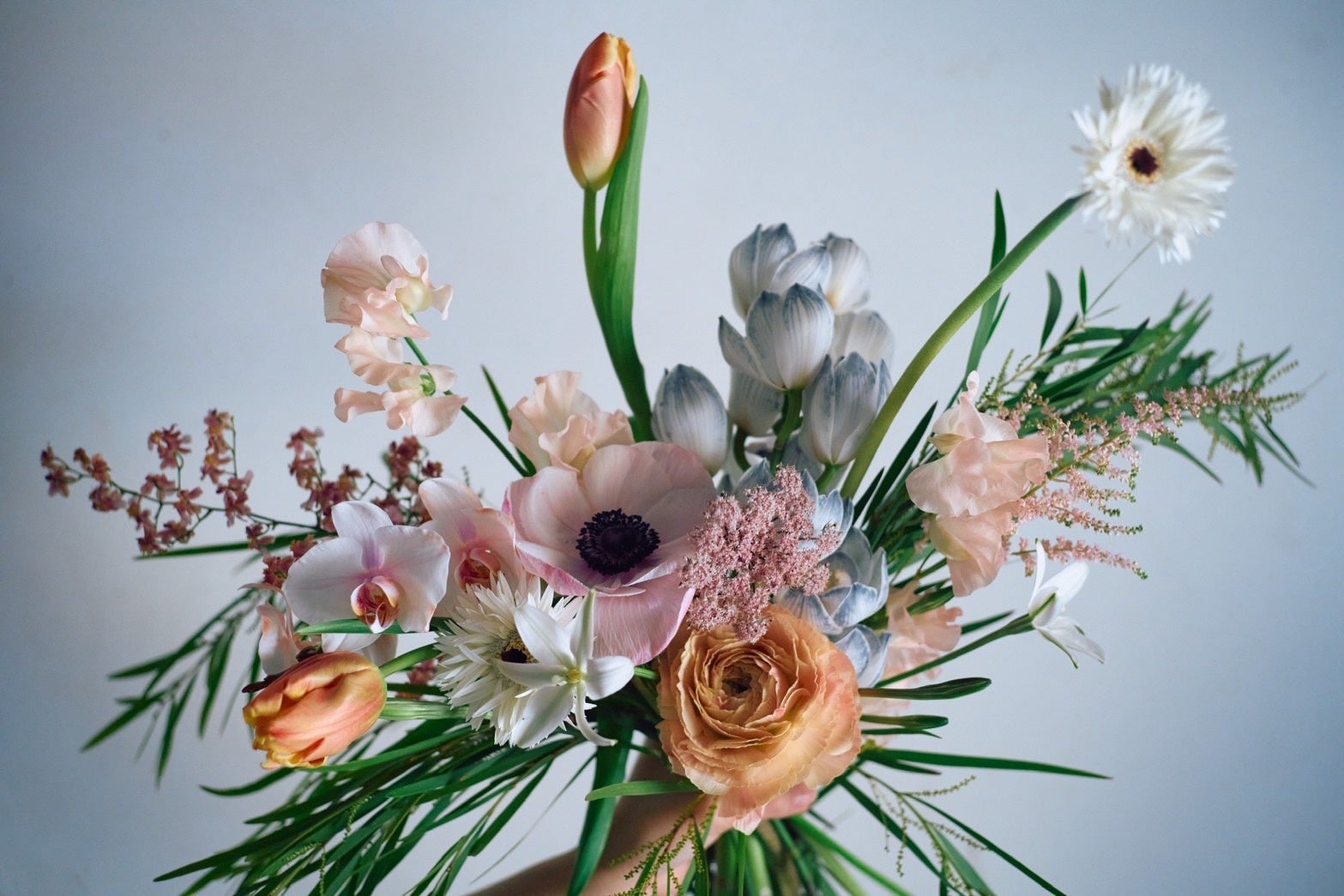 1991年、大阪府生まれ。美術大学を卒業後、大阪の映像制作会社に勤務。社内で植物の管理を担当したことが縁となり、植物の世界の虜に。花屋へ転職しようと上京した際に、写真家の西村明展さんと出会い、結婚しています。2014年から「NOKI」の屋号のもとオンラインでブーケやアレンジメントフラワーの注文を受けてきました。2022年に紀美野町へ移住。出産と子育てのため活動を一時休止していましたが、2026年には活動を再開し、夫・明展さんは「空中写真館」の拠点を構えるようです。