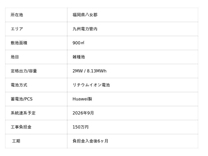 【案件2.】福岡県八女郡2MW蓄電所(開発中)