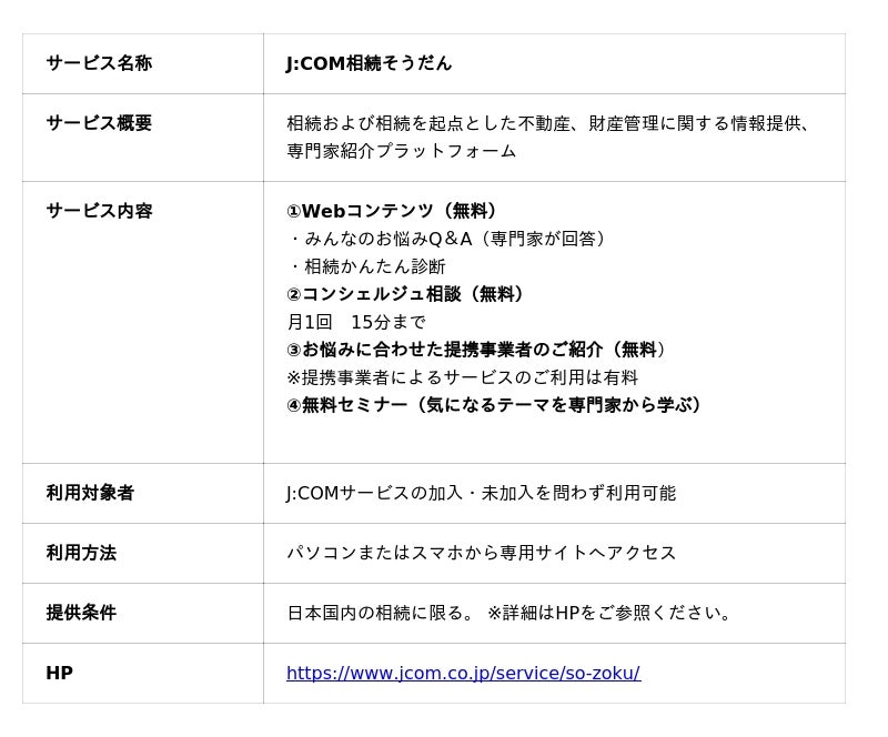 JCOM株式会社(J:COM、本社:東京都千代田区、代表取締役社長:岩木 陽一)は、2025年12月17日(水)より、相続に関する専門家選びをサポートする新サービス「J:COM相続そうだん」を開始します。