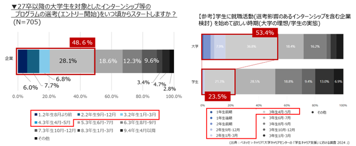 以上のことから、インターンシップ等のプログラムの選考時期が「3年生4-5月」であるとの認識は、企業と大学でほぼ一致しているものと捉えられる。