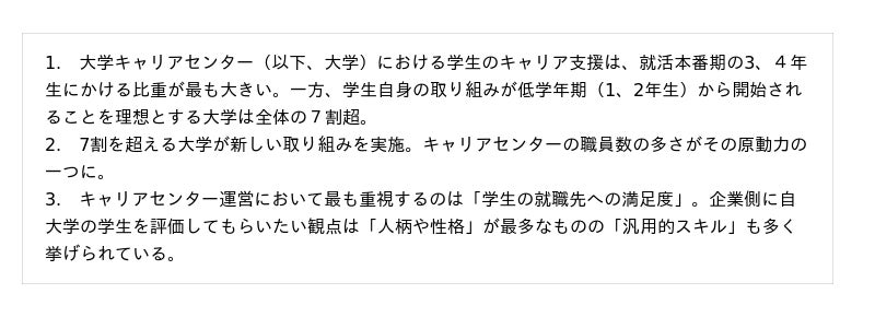この調査では、大学における学生支援において、低学年時からのキャリア教育や社会理解につながる取組の重要性が増していることが明らかになりました。
