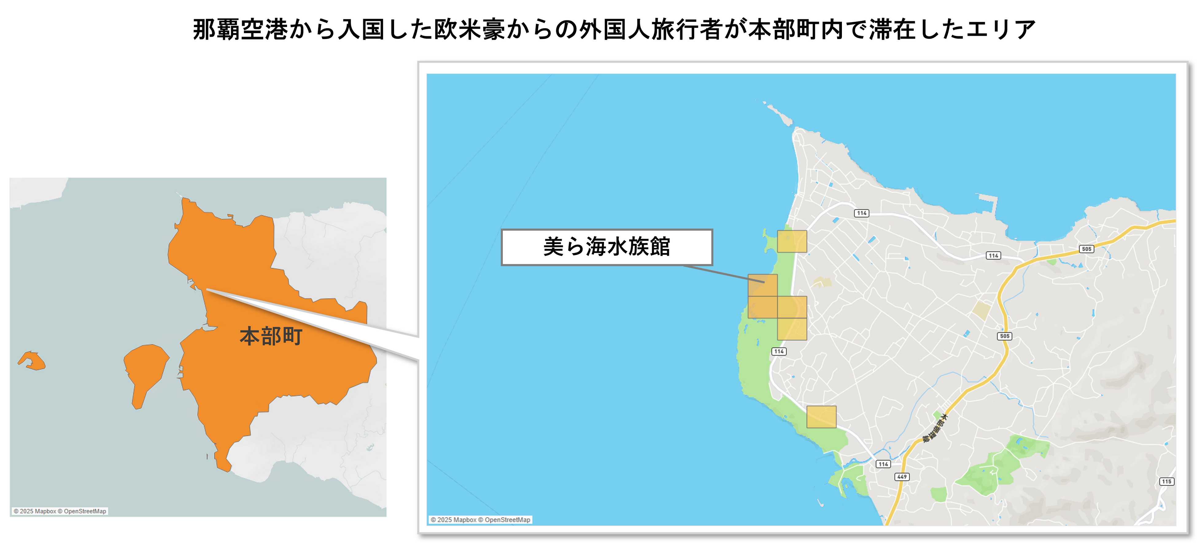 また、本部町での滞在エリアを見てみると、美ら海水族館での滞在が確認されました。