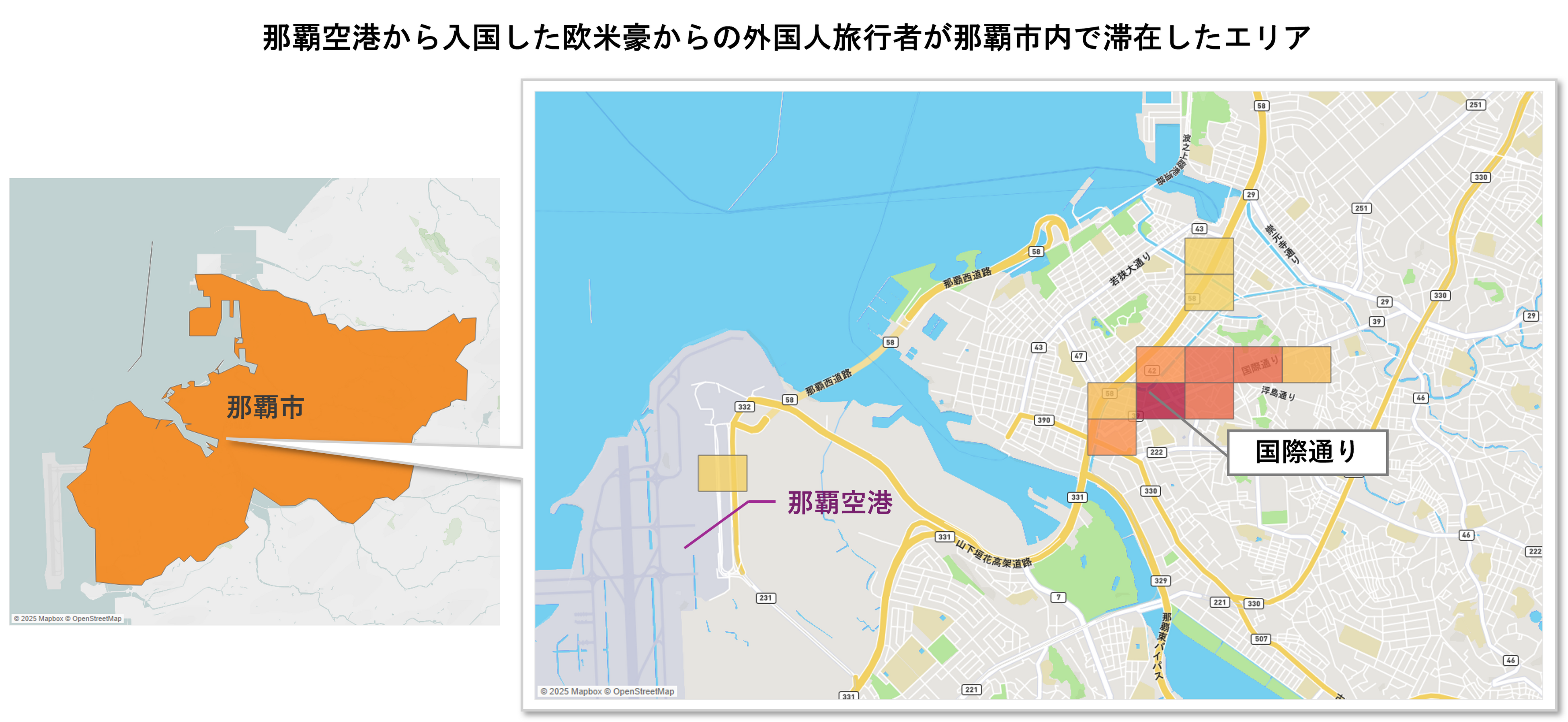 那覇市内での滞在エリアを見てみると、国際通り付近での滞在が確認されました。