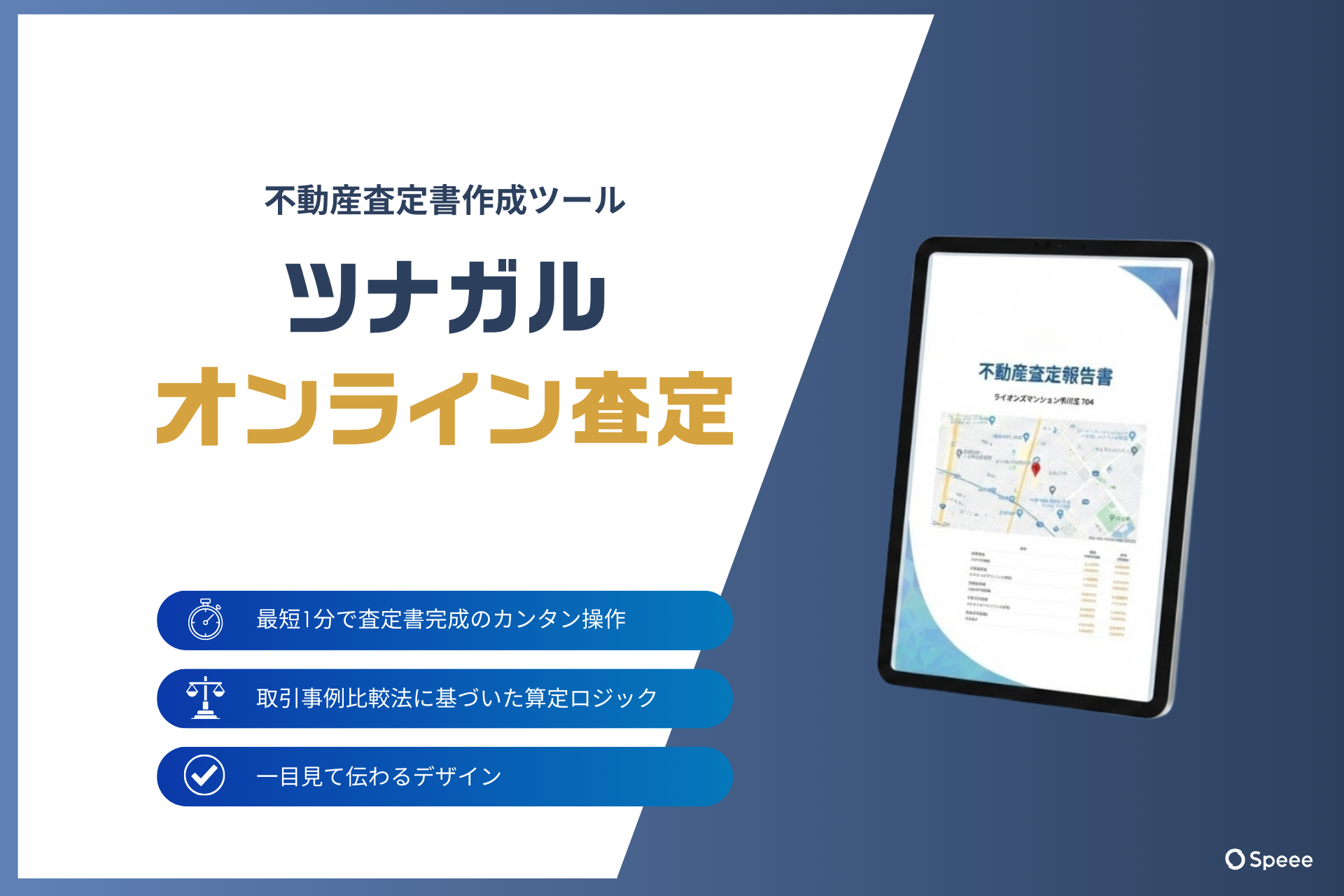 株式会社Speee(本社:東京都港区、代表取締役:大塚英樹、東証スタンダード:4499)は、不動産売買仲介会社(以下「不動産会社」)に向けて、AIを活用した不動産売買の査定書作成システム「ツナガルオンライン査定」の本格提供を開始し、本日より新規導入に向けたサービスサイトを公開いたしました。