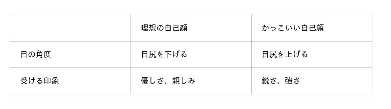 表1 「理想の自己顔」と「かっこいい自己顔」の比較
