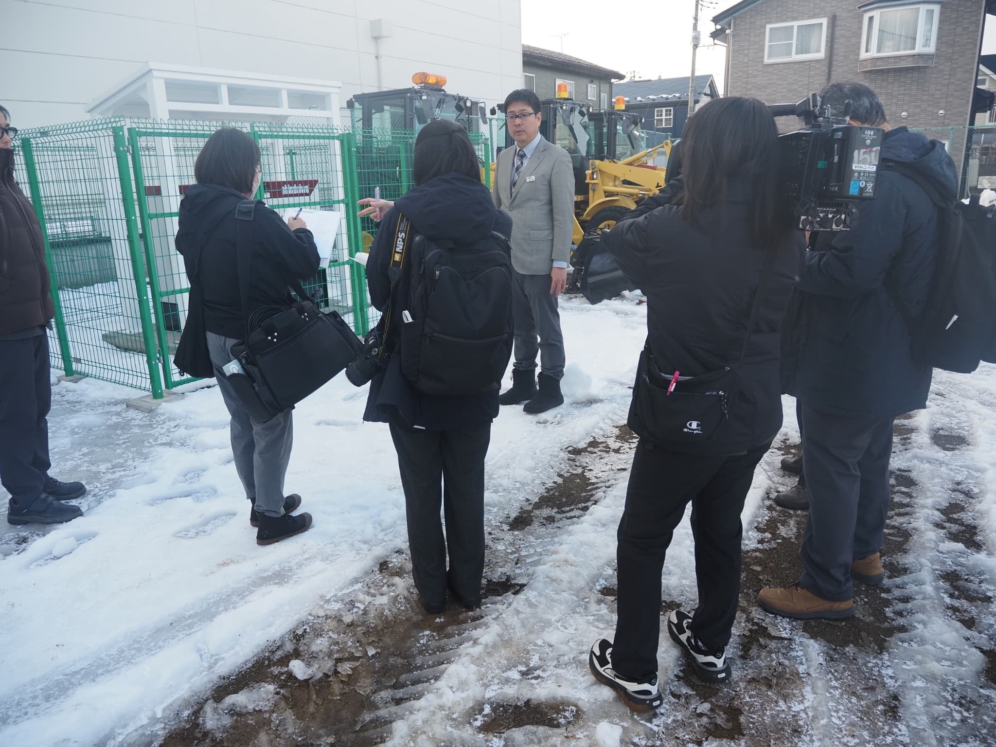 続いて、設置されたマルチハイブリッドシステムの実機を前に、導入に至った経緯やシステムの特長について報道関係者向けに説明を行いました。会場には複数の報道関係者が集まり、今回の導入意義や今後の展開について多くの質問が寄せられるなど、高い関心が示されました。