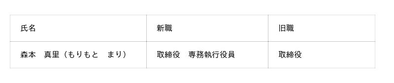 当社は、12月18日開催の取締役会において、下記のとおり役員人事を決議しましたので、お知らせいたします。