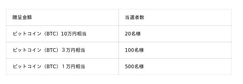 対象となる株主様から、抽選で合計620名に総額1,000万円相当分のビットコインを贈呈します。