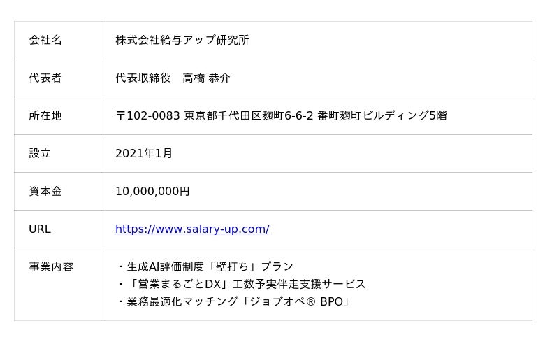 株式会社給与アップ研究所(本社:東京都千代田区、代表取締役:高橋恭介)は、