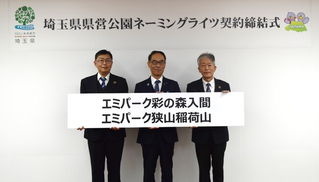 西武緑化管理株式会社(本社:埼玉県所沢市、代表取締役:植田 共一、以下:西武緑化管理)と西武鉄道株式会社(本社:埼玉県所沢市、社長:小川 周一郎、以下:西武鉄道)は、2025年7月より埼玉県が実施している県営公園等でのネーミングライツ事業において、埼玉県営狭山稲荷山公園および埼玉県営彩の森入間公園の愛称の命名権者(以下、「ネーミングライツパートナー」)として選定されました。また、西武緑化管理は、埼玉県営和光樹林公園のネーミングライツパートナーにも選定されました。これに伴い、本日、埼玉県との契約締結式を行いました。