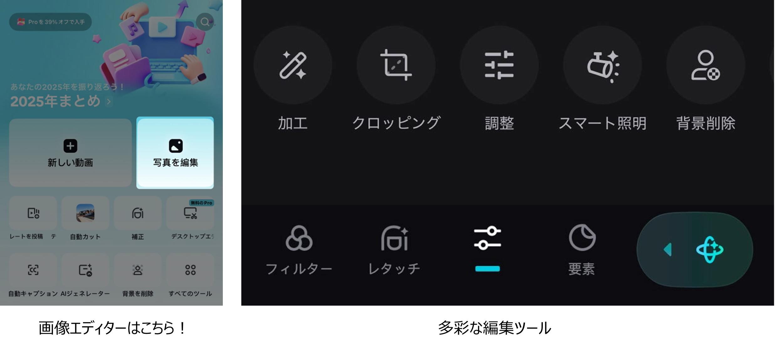2. 「画像エディター」機能と「写真スタイラー」機能の提供