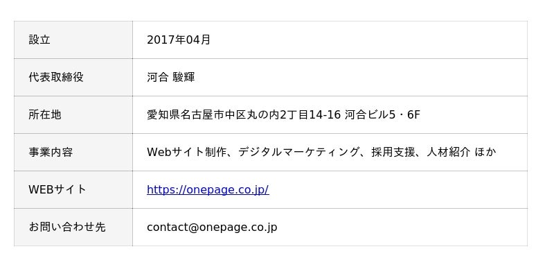 【会社概要:ワンページ株式会社/onepage inc.】