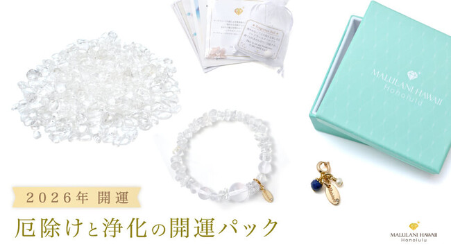 ハワイ発祥の天然石アクセサリーブランド「マルラニハワイ」では、そんな2026年に寄り添う開運アイテムとして、すべてを清める水晶を中心にした「浄化と厄除けの開運パック」を発売開始いたしました。