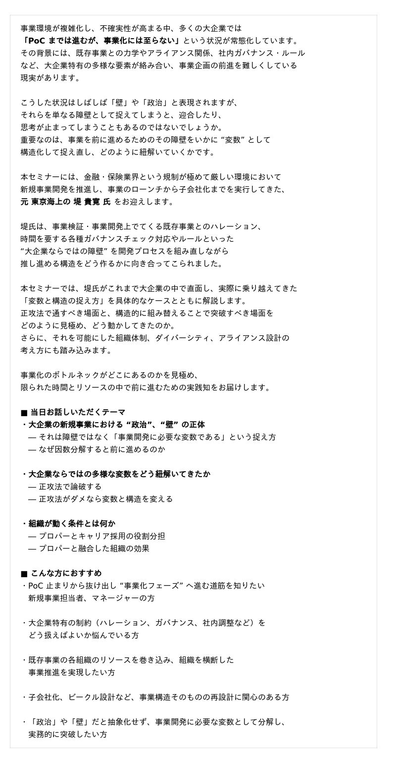 ~大企業ならではの「障壁」を構造化し、 事業を動かす考え方~