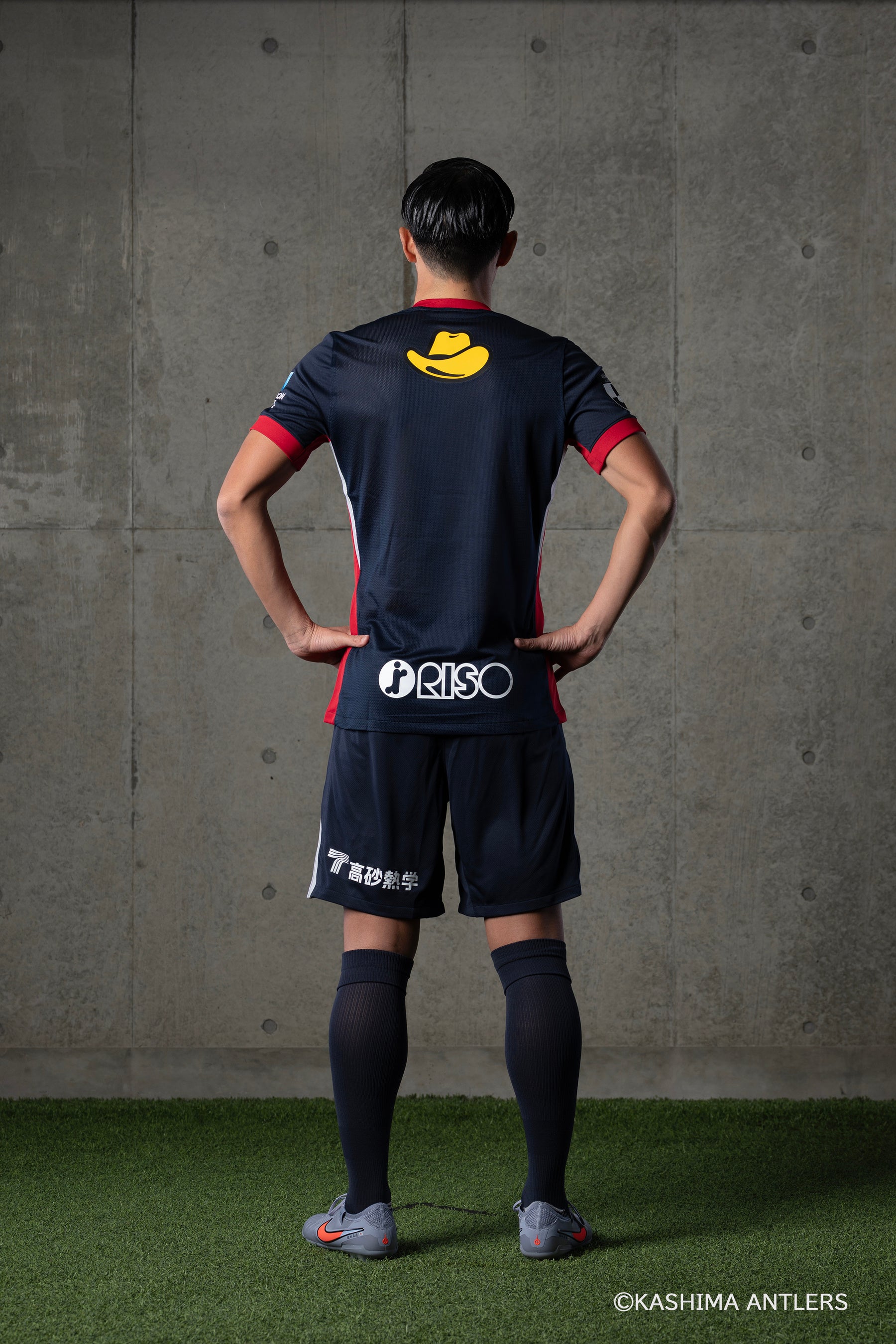 デザインの核となるのは、夜明けを待つ静寂を湛えた「鹿島灘のダークネイビー」。この深みのあるベースカラーに、クラブの誇りである「ディープレッド」をホリゾンタルストライプとして大胆に配置した。水平線から昇る最初の一筋の光のごとく、静寂を切り裂いて差し込むディープレッドの輝きは、新たな時代の先陣を切る覚悟と、溢れ出す強固な意志を表現している。