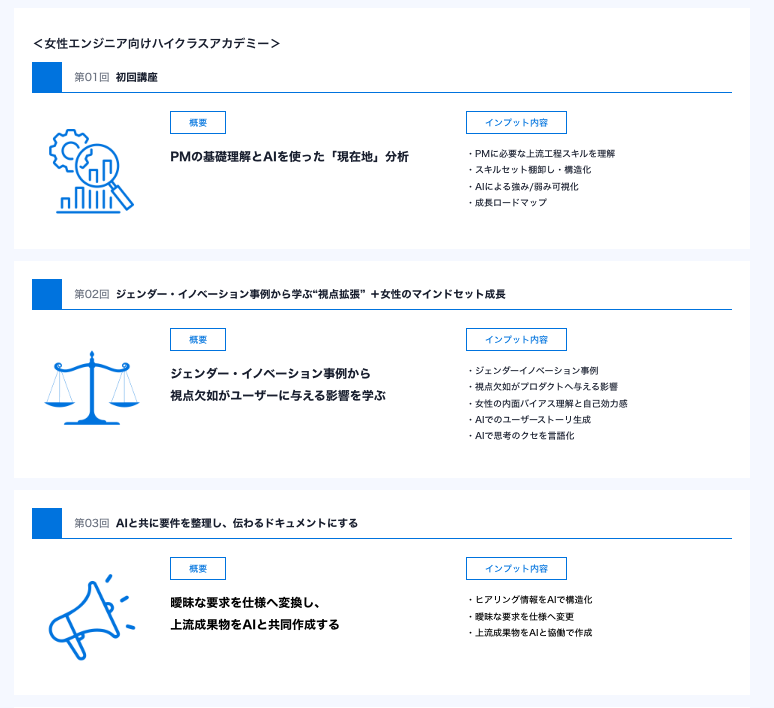 本講座は、IT業界におけるジェンダーギャップの解消を目指す当社が、AI時代における技術職の新たな役割定義と、次世代女性リーダーの育成を目的として提供するものです。