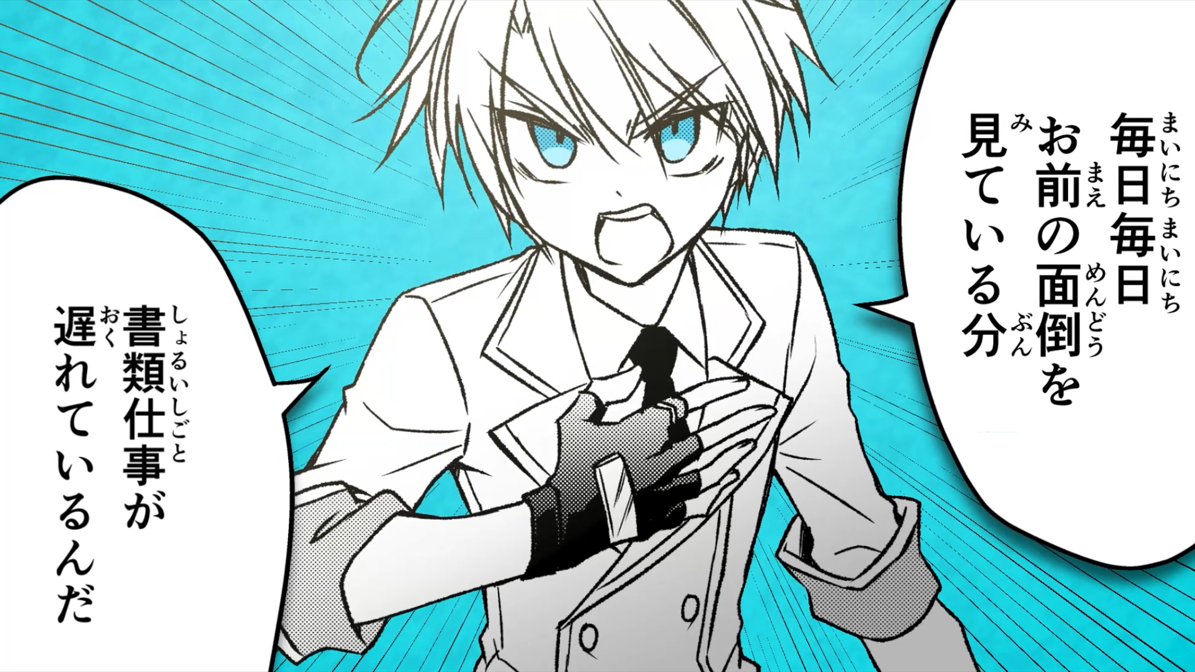 特別映像『Knights of Scarlet』アルとランスロットの活動報告は、ランスロットの対応に追われ書類仕事が遅れたアルが、ランスロットにも業務を手伝ってもらおうとする内容。