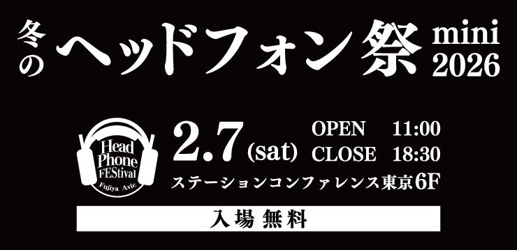フジヤエービック(株式会社フジヤカメラ店 エービック事業部)では来たる2026年2月7日(土)に、ヘッドホン・イヤホンをメインとしたオーディオ展示イベント「冬のヘッドフォン祭mini 2026」を、東京・八重洲北口直結の「ステーションコンファレンス東京」6Fで開催いたします。