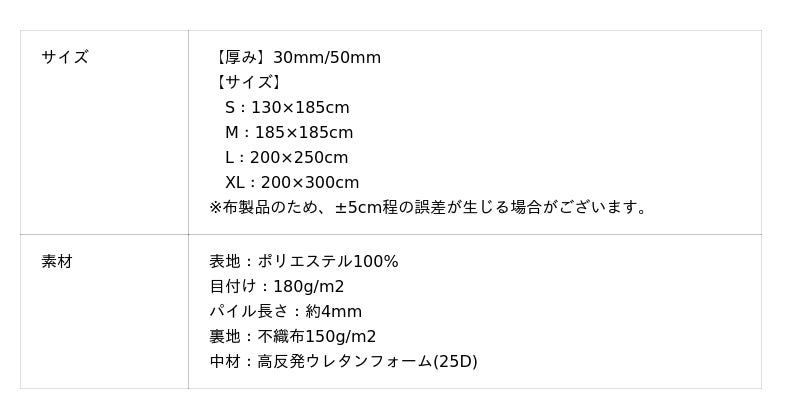 表面のフランネル生地と滑り止め付き裏地を組み合わせた3層構造により、厚みに関わらず底付き感を抑え、床に座っても、寝転んでも快適に過ごせるクッション性を実現しています。