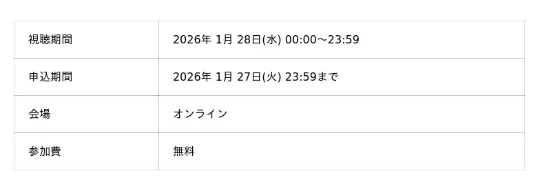 を2026年1月28日(水)限定(00:00~23:59)でオンデマンド配信します。