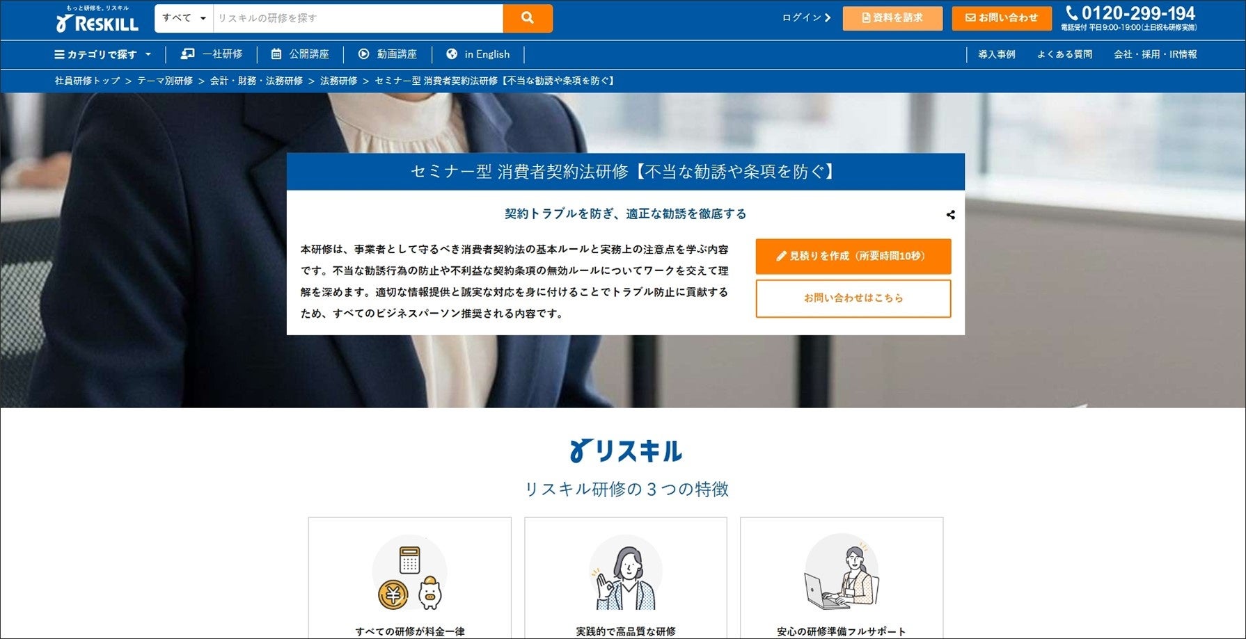 契約トラブルを未然に防ぐ。全従業員向け「セミナー型 消費者契約法研修」を提供開始:社員研修のリスキル