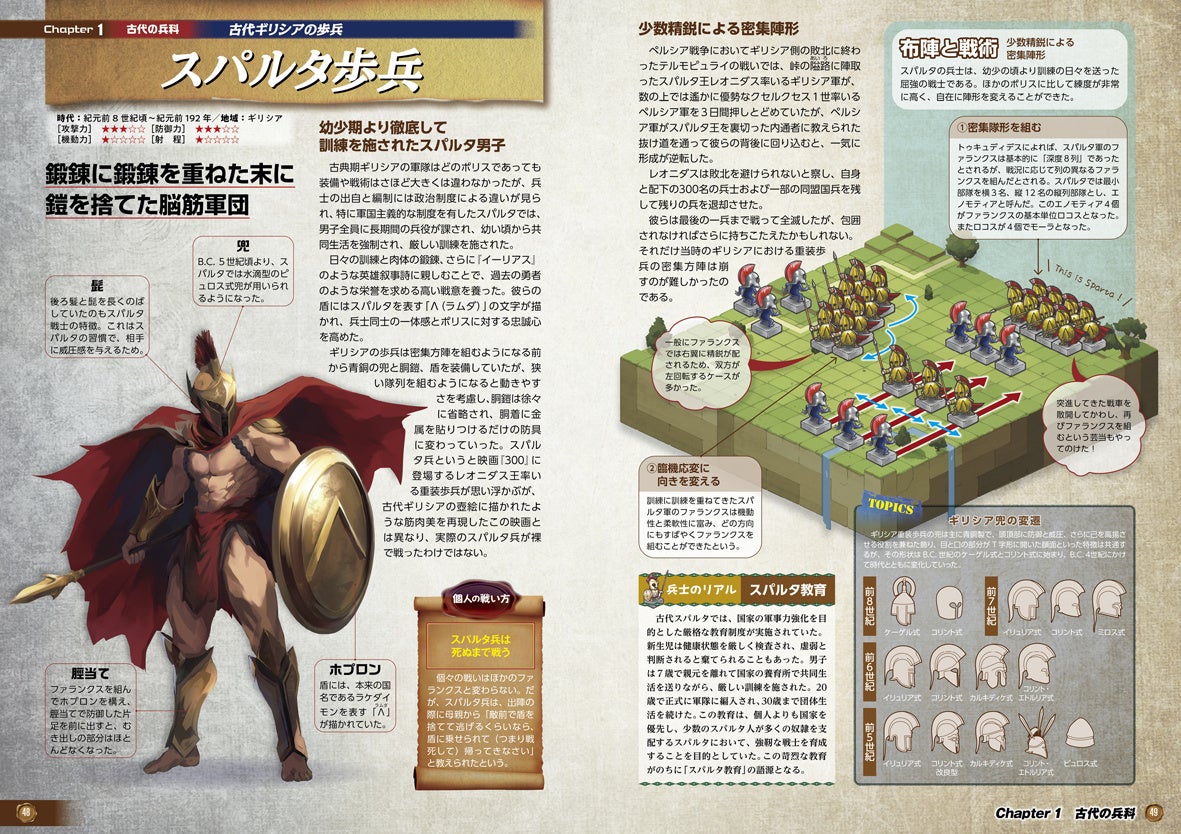 シュメールの戦士からナポレオン時代の軍に至るまで、各時代・各地域に存在した特徴的な兵科を取り上げ、装備や武器、防具の変化、部隊編成、そして戦術の進化を、豊富な図版とともに紹介しています。[画像2: https://prcdn.freetls.fastly.net/release_image/144952/230/144952-230-ea68b16b17247d2a54f6a9e03033d928-1181x834.jpg?width=536&quality=85%2C75&format=jpeg&auto=webp&fit=bounds&bg-color=fff ]
