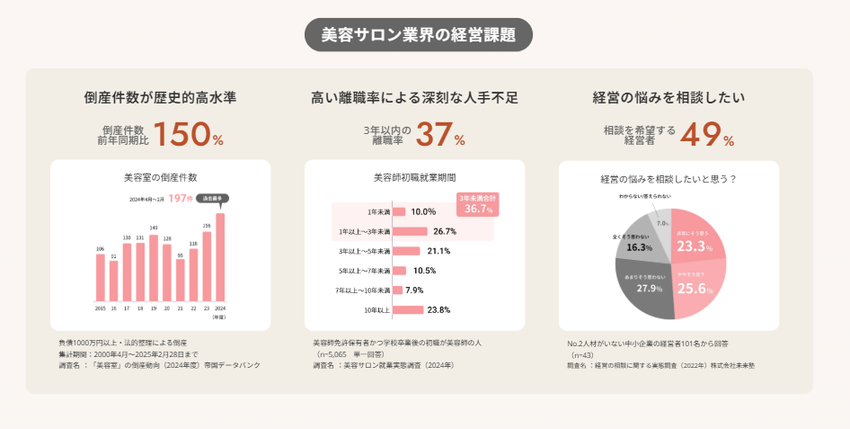 また、近年、美容サロン業界では以下のような課題が顕在化しています。