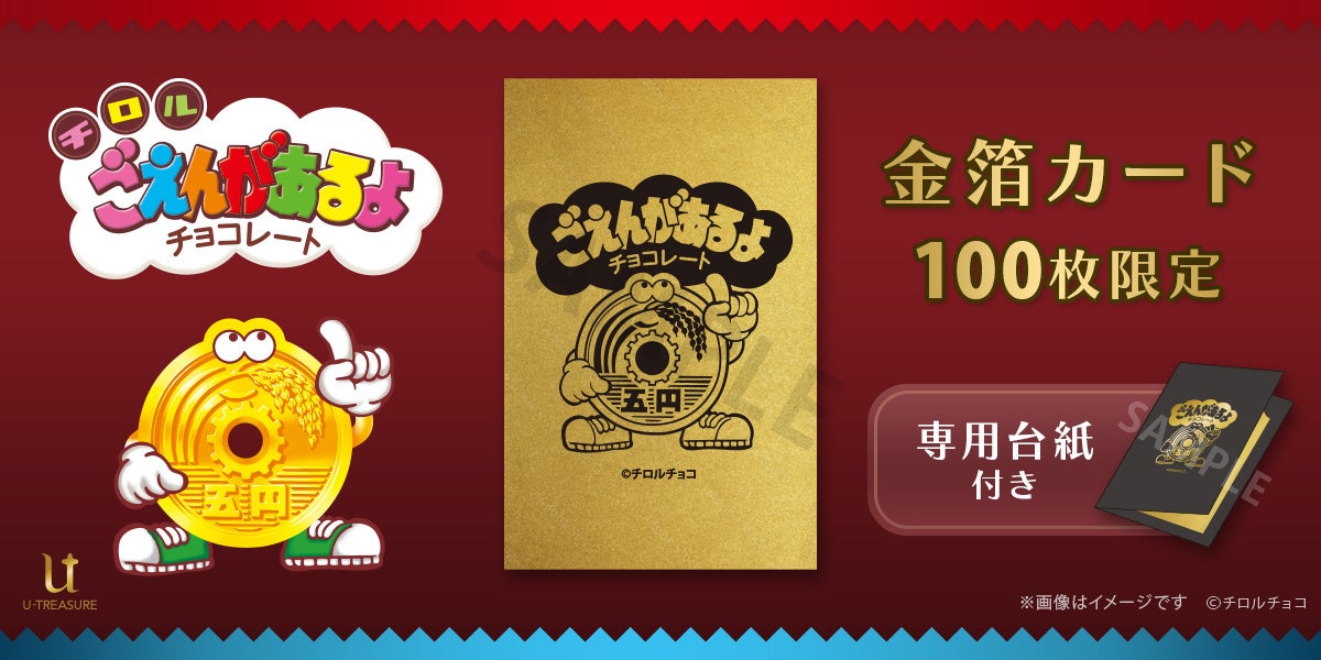 株式会社ユートレジャー(本社:東京都新宿区、代表取締役社長:青木 興一)は、チロルチョコ株式会社のロングセラー商品「ごえんがあるよ」とコラボレーションした『「ごえんがあるよ」金箔カード』を抽選で5名様にプレゼントする、Xフォロー&リポストキャンペーンを2026年1月9日(金)~1月14日(水)の期間で開催中です。