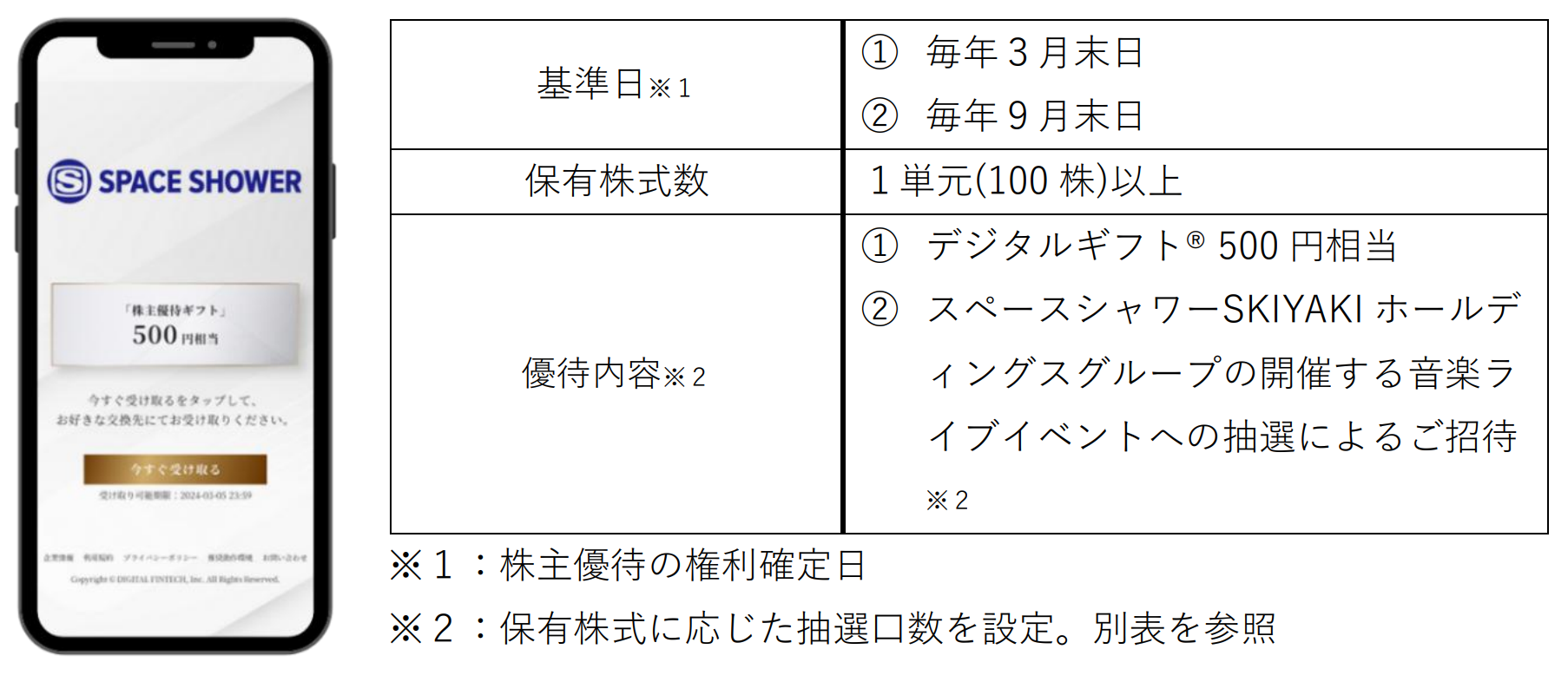 スペースシャワーSKIYAKIホールディングス株式会社(代表取締役共同社長:林 吉人・小久保 知洋、東証スタンダード市場:証券コード4838)において、2026年3月末日を基準日とする株主優待より、株式会社デジタルプラス(代表取締役社長:菊池 誠晃、本社:東京都渋谷区、東証グロース市場:証券コード3691)グループが運営する「デジタルギフト(R)」をご活用いただくことになりました。