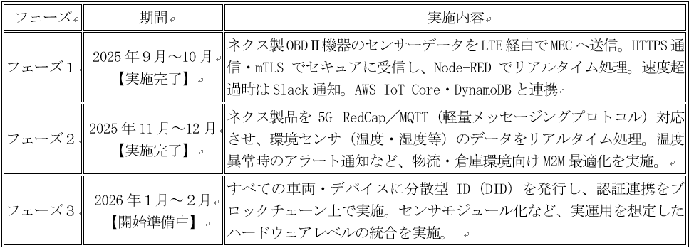 当社は、子会社である株式会社ネクス(以下、「ネクス」といいます。)と共同で推進している「Web3型IoT統合ソリューション構想」におけるPoC(概念実証)について、フェーズ2(5G RedCap/MQTT対応)の実証を完了しましたので、下記のとおりお知らせいたします。