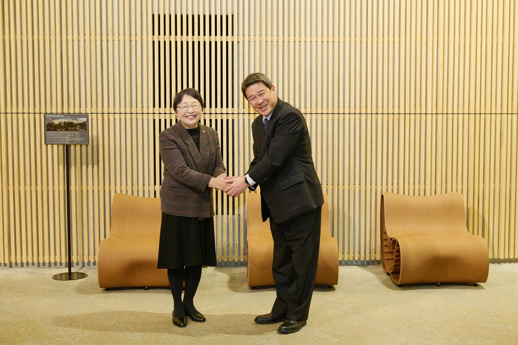 贈呈式 (左)上智大学 杉村美紀 学長 (右)大日本印刷株式会社 執行役員 谷康行