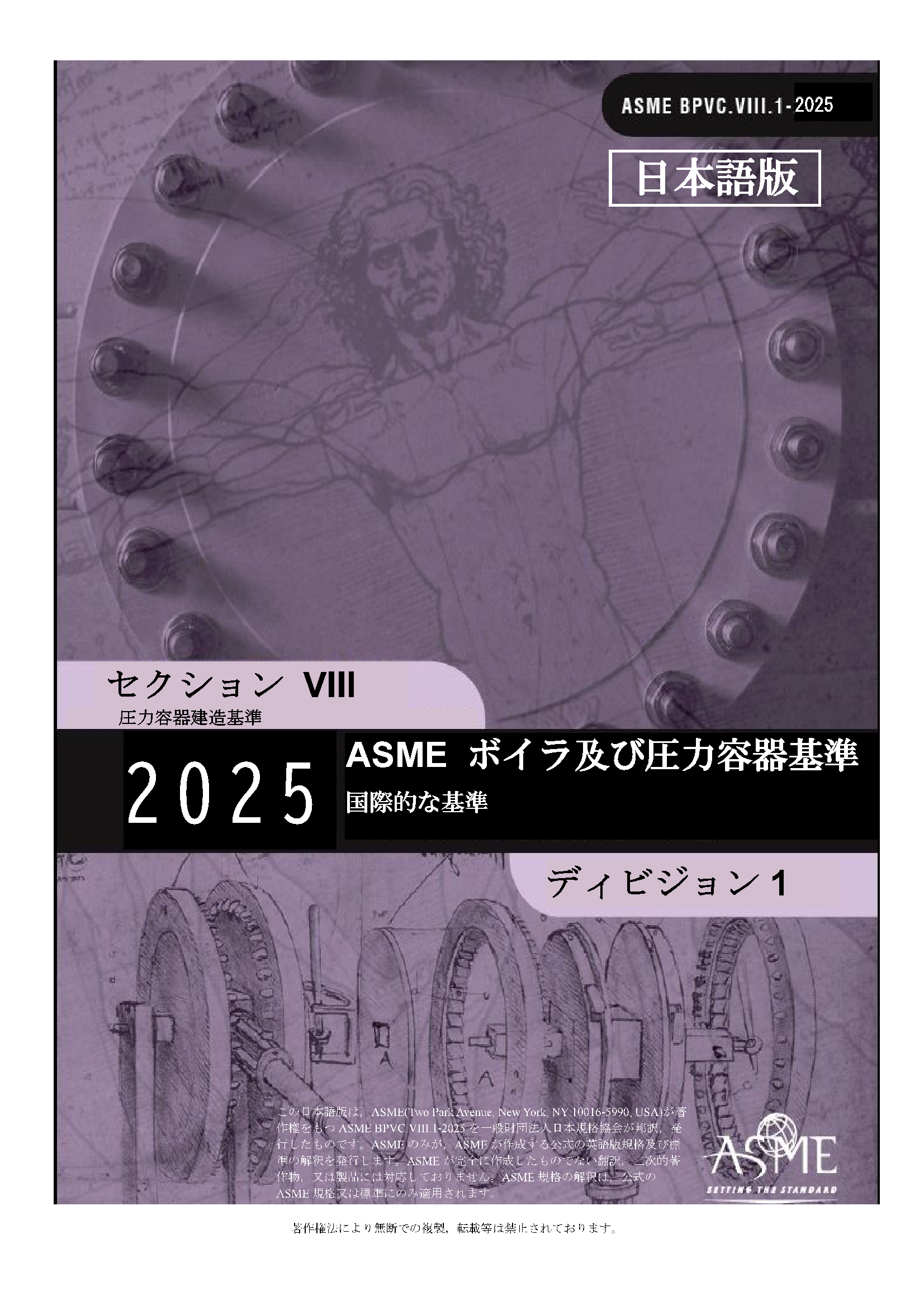 邦訳ASME BPVC 2025 Section VIII-1(日本語)ボイラ及び圧力容器基準 セクション Vlll-1 圧力容器建造基準 Rules for Construction of Pressure Vessels Division 1