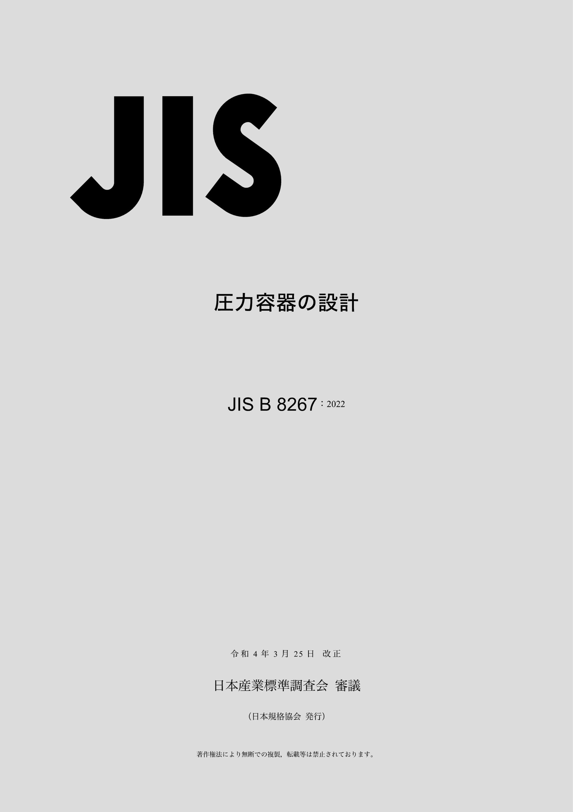 JIS B 8267:2022 圧力容器の設計価格:11,990円(税込) A4判・390頁