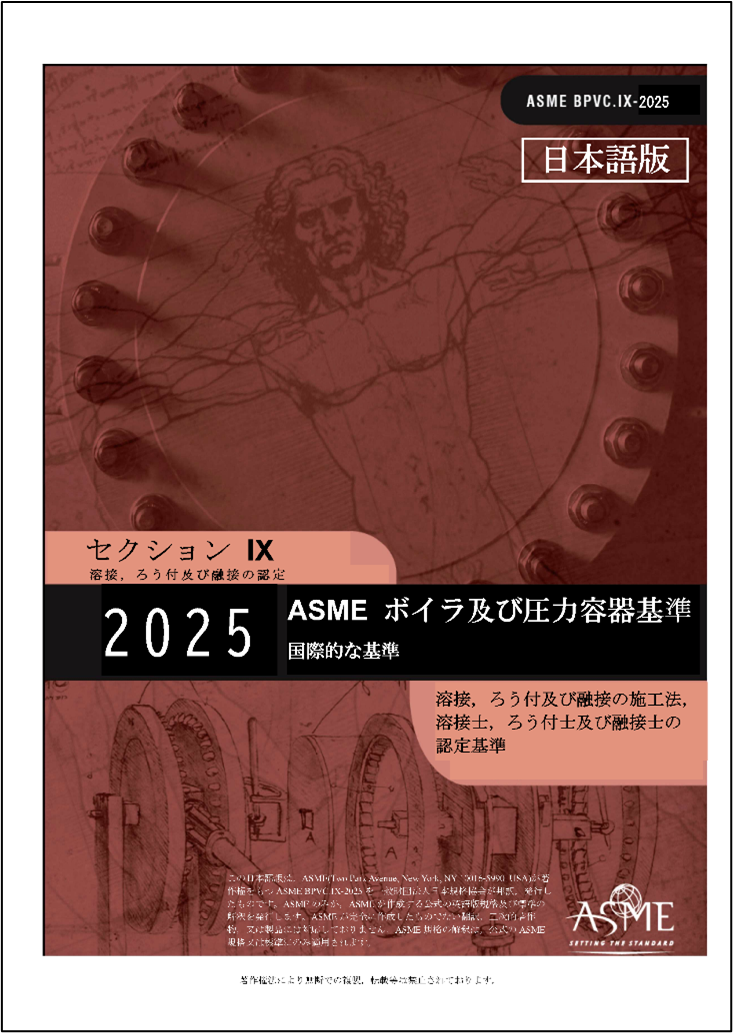 邦訳ASME BPVC 2025 Section IX(日本語)ボイラ及び圧力容器基準 セクションIX 溶接、ろう付及び融接の施工法、溶接士、ろう付士及び融接士の認定基準 Welding, Brazing, and Fusing Qualifications