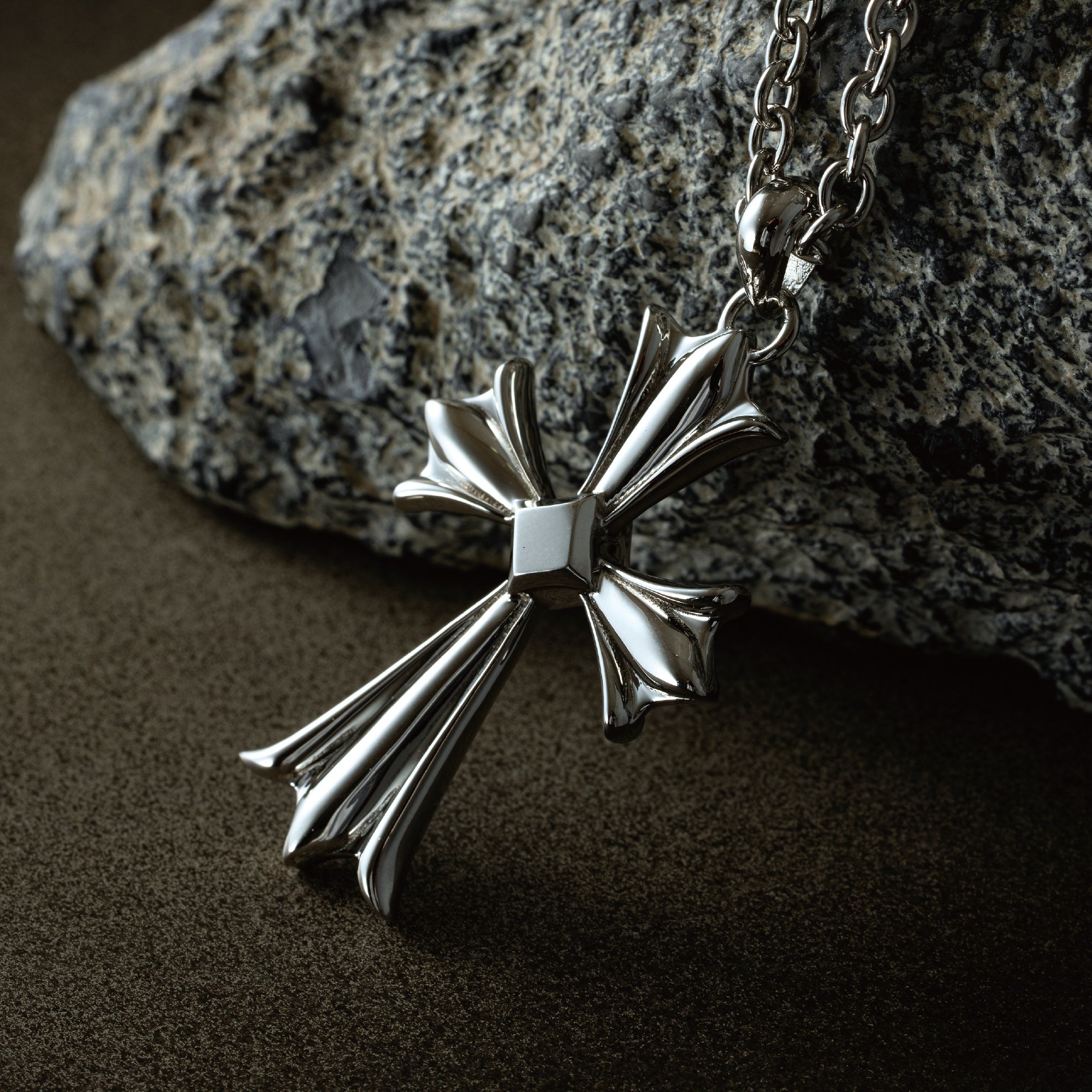 シルバーの重厚感が美しく際立つ、シンプルかつ力強いデザイン。アメリカにおいてクロスは、信仰や祈りの象徴として広く受け入れられてきました。そのクロスに、大切な人の遺骨を納めることで、より個人的で深い意味を持つジュエリーへと。信仰と追憶を結び、身近に祈りを感じられるクロスジュエリーです。