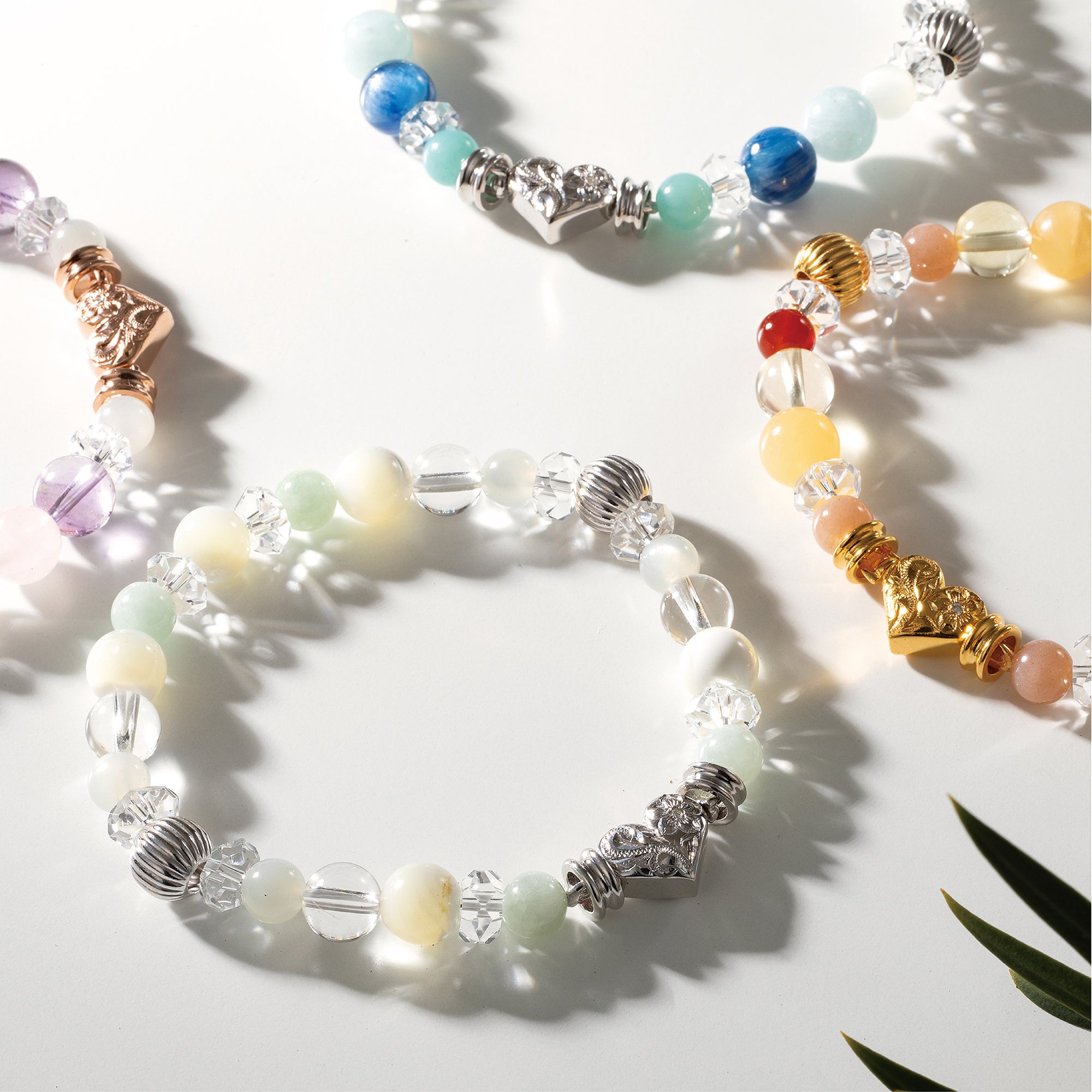自然をモチーフにしたパワーストーンジュエリーで、アクセサリー感覚で身につけられるデザイン。大切な人を想うお守りとしてはもちろん、日本で親しまれてきた念珠ブレスレットのように、日常に寄り添う祈りのかたちとしてご提案します。ファッションとスピリチュアルを結ぶ、新しいスタイルのジュエリーです。