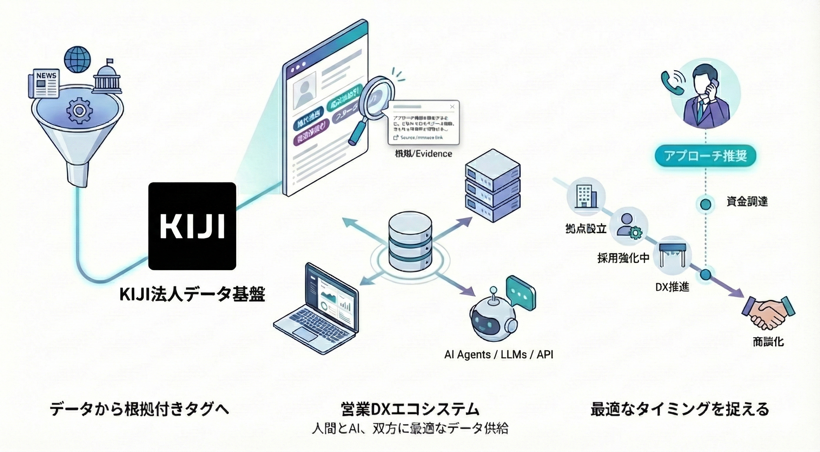 - 企業サイト・求人・ニュース・事業活動データから「売れるタイミング」を検知