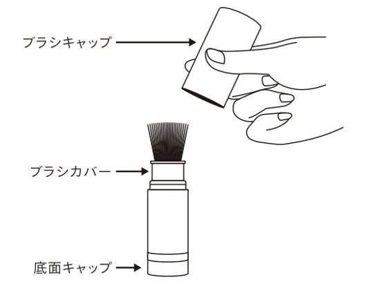 ●ご使用後は、ティッシュペーパー等で、ブラシやブラシキャップの内側に残っている粉をふき取り、ブラシカバーをカチッとなるまで上に引き上げて、ブラシキャップをしっかりと閉めてください。(図5)