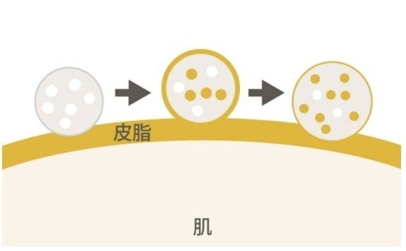 皮脂吸着パウダーには無数の孔が存在。球状で多孔質なため、皮脂をよく吸着し、サラサラな使用感に。