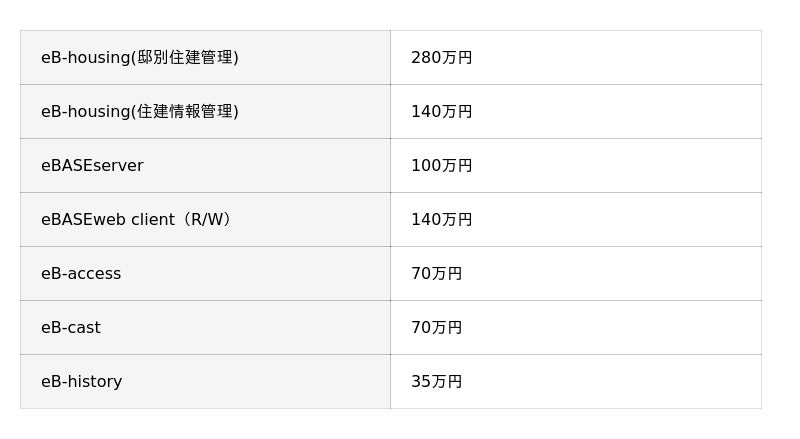 (2)クラウドサービス利用(HOUSING eBASE Cloud):SaaS提供価格