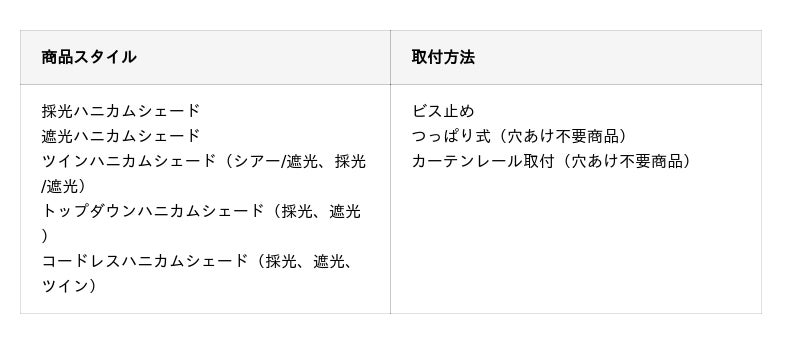 主なハニカムシェード商品のご紹介