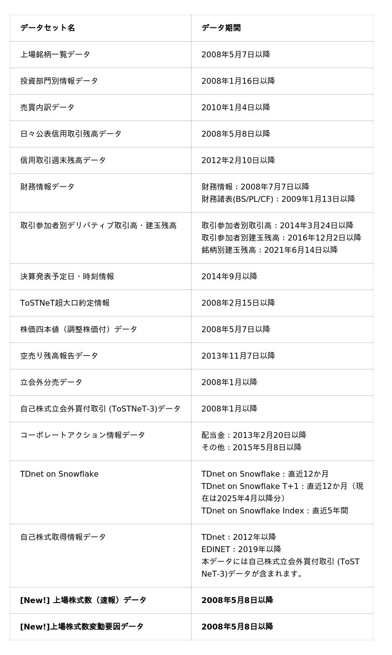 法人向けデータ配信サービスJ-Quants Pro 上場株式数(速報)データ及び上場株式数変動要因データ追加のお知らせ