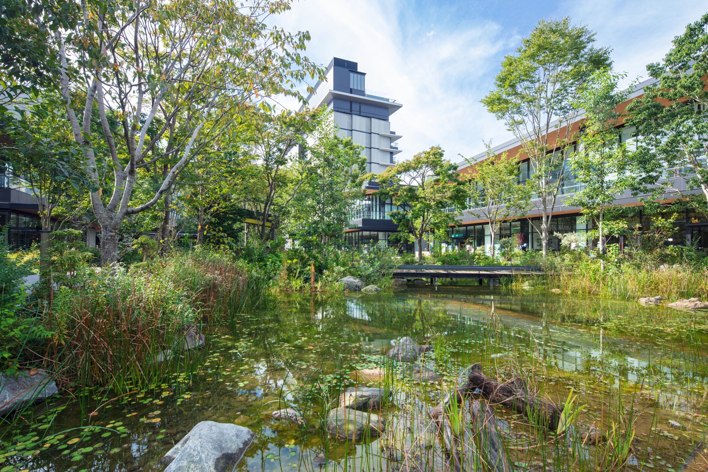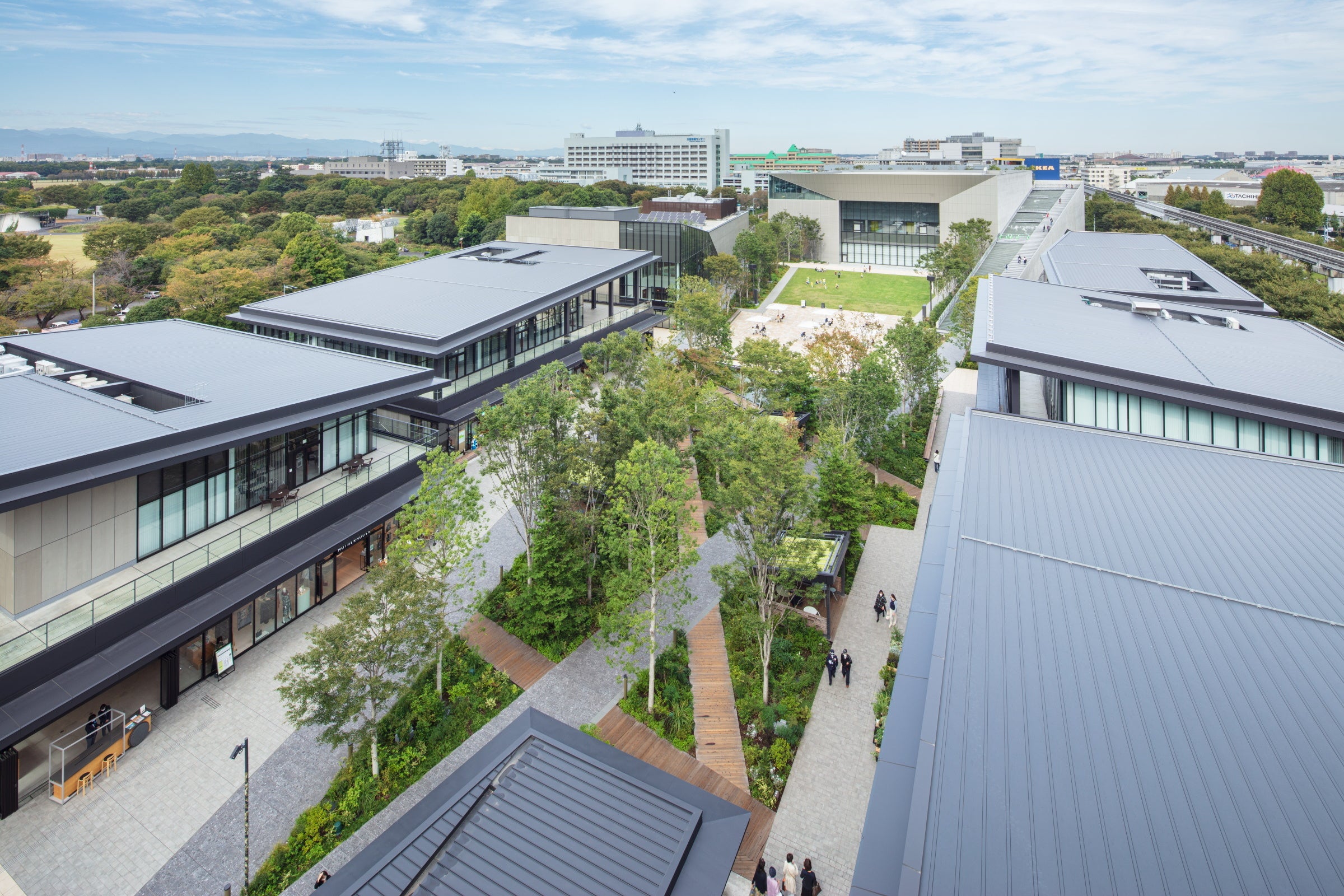 2020年4月にオープンした、ウェルビーイングをテーマとした複合施設です。水と緑豊かな約1万平方メートル の中央広場を中心に、最上階にインフィニティプールを有するホテル、多摩地区最大規模約2,500席の多機能ホール、ショップ・レストラン、オフィスなどが配置されています。広々とした開放的な空間を生かした様々なイベントを毎月開催しています。