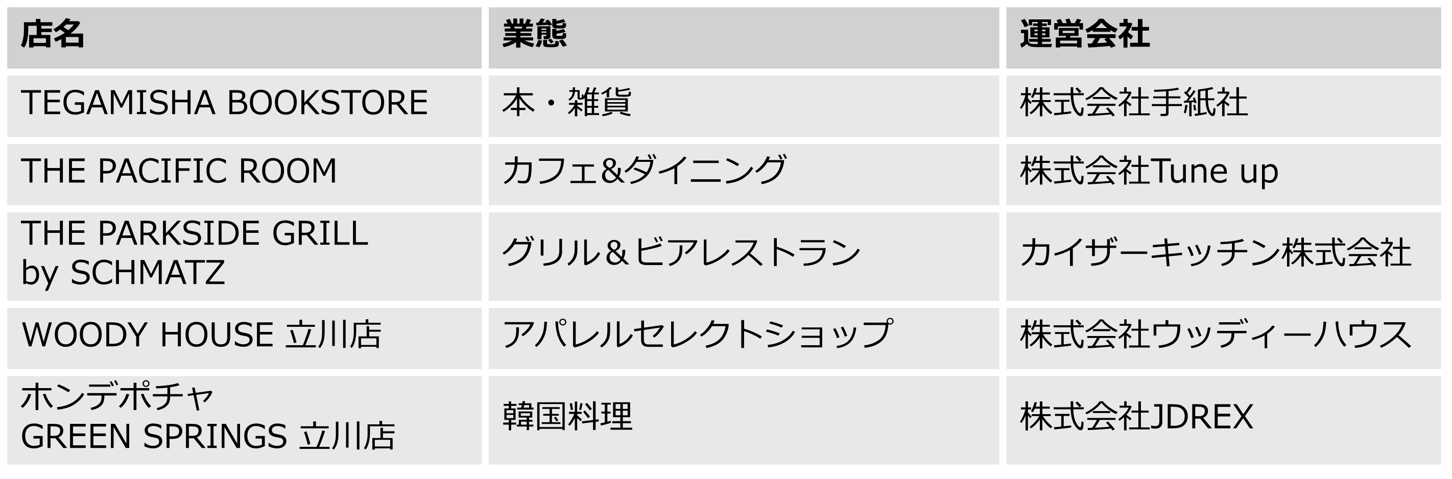 各ショップのオープン日および出店場所等詳細情報は3月頃公開を予定しております。