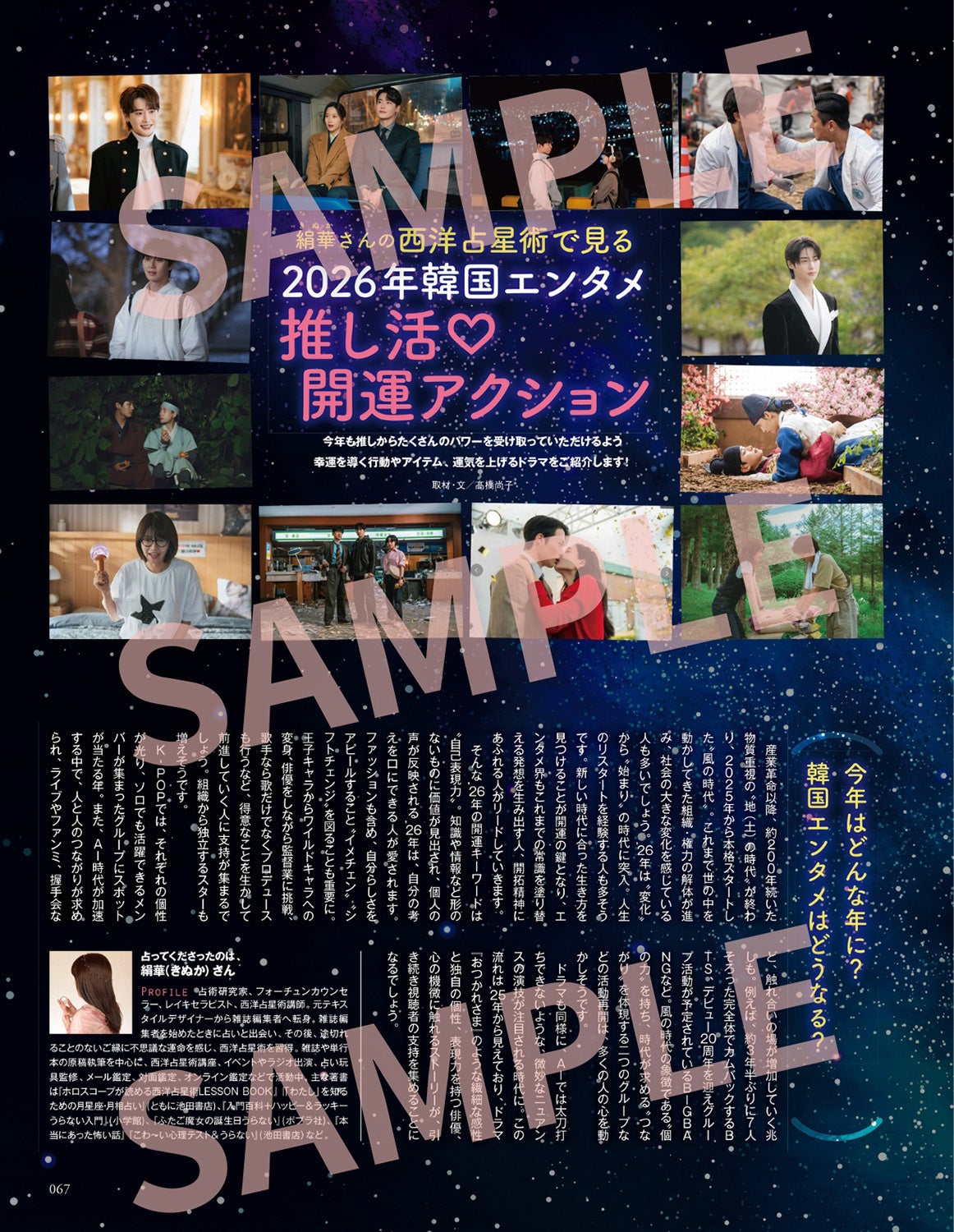 ほかに、韓国の現地記者の“リアルな声”をお届けする『2025年 韓国ドラマ、映画、音楽総決算』。NHK BSで放送がスタートした『世子<セジャ>が消えた~禁じられた愛~』により、ふたたび注目を集める韓国時代劇の中から韓流ぴあおすすめの”世子ドラマ”を特集。『世子<セジャ>が消えた』に主演するスホ(EXO)のインタビューも掲載しています。さらに『西洋占星術で見る 2026年韓国エンタメ 推し活(ハート)開運アクション』で、推し活ライフをより充実させるお手伝いをいたします。リーダーのKAZUTAがMCとなり、メンバーに根ほり葉ほり話を聞いていく大好評のn.SSign連載、第3回もご期待ください!