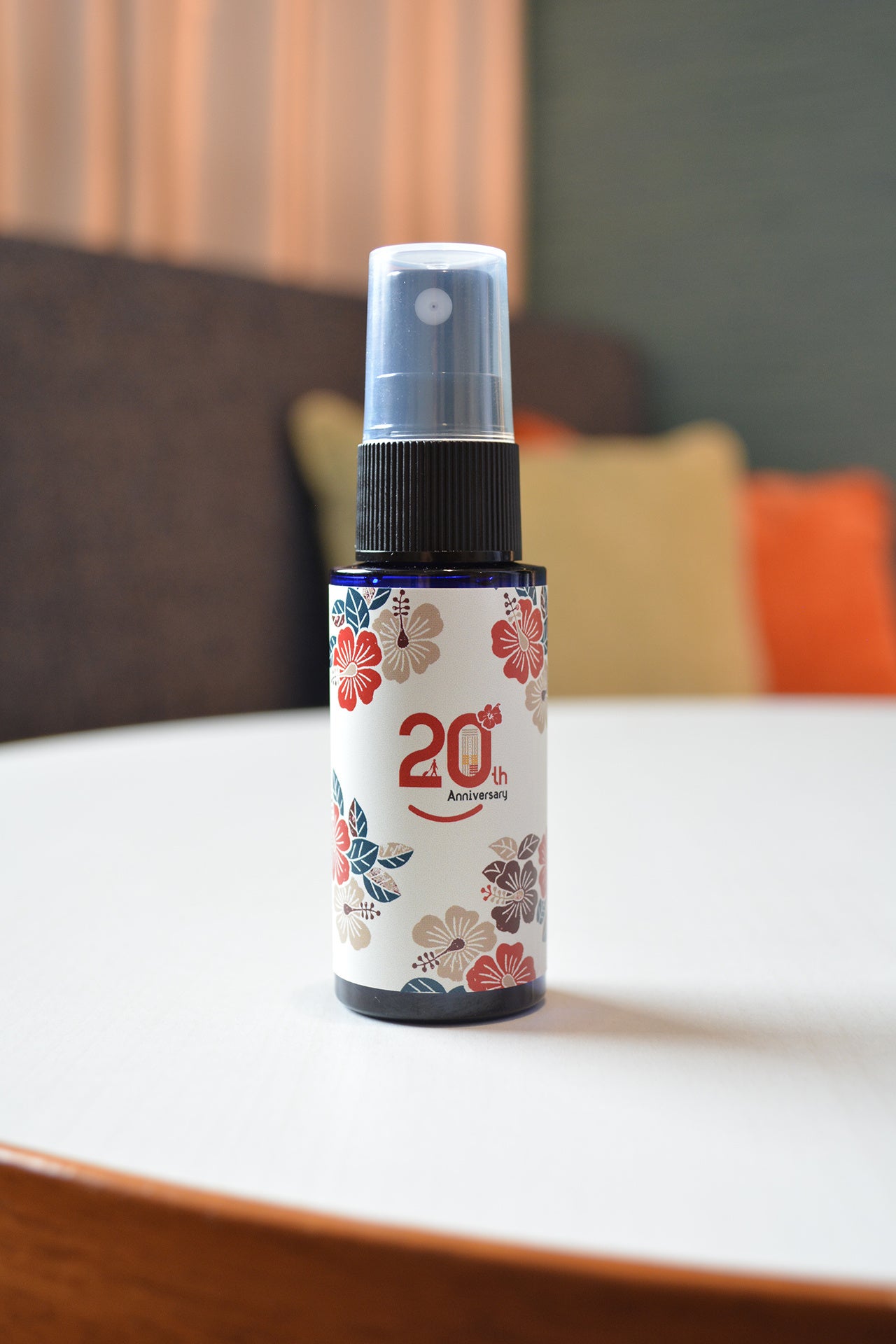 開業20周年企画の第1弾は、20の数字にちなみ2,000円分の館内利用券がついた宿泊プランの販売や、毎月20日にレストランご利用のお客様に抽選でランチ券などが当たるイベント「20周年記念お楽しみ抽選会」の実施、オリジナルデザインの「20周年記念フレグランスミスト」を販売いたします。